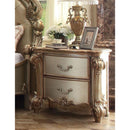 Add a majestic and traditional style to your home with this Nightstand. The beautifully scrolled poster legs, molding trim, and decorative metal hardware of this nightstand create a silhouette reminiscent of classical architecture while its dual finish provide plenty of visual interest to enhance its elegant appearance. The two drawers lets you store your reading books, reading glasses, and other belongings at an arms length away from you in bed, while the compact top provides a perfect platform for remotes and coasters, a vase of fresh flowers, or a stylish lamp. Crafted of durable wood and finished in gold and bone white, the nightstand will work in any dcor accommodating a wide array of design sensibilities. Note: Other featured items in image except this Nightstand are sold separately.