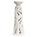 Give a soft and traditional glow to your home interior by adding this palm leaf candle holder. By simply adding to the table or shelf will give an illuminated look to the atmosphere. Beautifully crafted using ceramic, this large-sized palm leaf candle holder feature a white finish with hollow bottom giving it a dramatic charm. Its wide circular top can accommodate a variety of candles. This candle holder is a versatile accent to decorate any theme home.