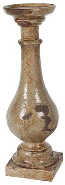 Uplift your interior dcor by adding this shinny and distressed candle holder. Made up of ceramic, this bellied pillar shaped candle holder features distressed brown finish. Traditional in style, it stowed on square base that provides it stability. Adorn it on special occasions with designer candles for candle night parties or dinner. This shinny candle holder has subtle shiny finish that will make your settings look elegant.