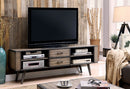 With plenty of shelf and storage, you can store all your books and media units in one space with the Celestin TV unit. The clean lines are a nod to the minimalist aesthetic that's truly timeless. Simplify the entertainment room without giving up your personal style. This storage structure features multiple shelving options to hold your media accessories while dual drawers add storage space. Supported upon gray finished metal legs, the entire piece offers a creative alternative to the traditional entertainment unit.