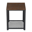 Add rustic charm to your living space with the addition of this industrial style square nightstand. Durably constructed iron framed table features a rustic brown finished particle board top for the placement of table lamp, vases, family photos or other related items while the bottom shelf with wide mesh design, are ideal for storage of books, magazines, storage baskets and various other items. This nightstand comes with the floor protectors that can prevent scratches on the floor and also can be adjusted to provide stability in the case of uneven floors. Place this nightstand along side your bed or in your living room as a side table.