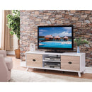 Modern TV Stand With Cutout Drawer Storage, White and Brown