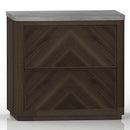 Brilliantly styled with a sense of functional assistance and statement, this nightstand features a class to own it. Solid wood construction with full gliding mechanism, this nightstand features a unique natural brown finish that will blend easily with all color theme bedroom interiors. All two drawers consists Intricate Parquet detail and concrete top, giving it a classic look. Bring this home to create a serene retreat and to turn your bedroom into the master suit.