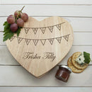 Get the bunting out and show mum just how much you care! This adorable cheese board is engraved with a bunting design and cleverly the words 'World's Best Mum' are put into the design. You are able to personalise the board with mum's full name which is engraved onto the board with a simply stunning slick font. Heart cheese board with integrated specialty knife compartment made from sustainable Hevea wood. Includes 3 wooden handled specialist cheese knives with stainless steel handles. Rotating knife compartment. Made from Hevea wood which is environmentally friendly. - Cheese Fork - Stilton Knife - Cheddar Knife Please fill in the personalisation fields to the right of the page. Dimensions of board: 22cm x 22cm x 4cm Dimensions of knives: 12cm x 3cm (at handle)