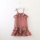Fashion Girls Cotton Plaid Print Spaghetti Strap Dresses
