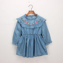 Girls Cotton Floral Embroidery Long Sleeves Dresses
