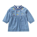 Girls Cotton Long Sleeves Star Embroidered Dress