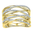 Description 10kt Yellow Gold Women's Round Diamond Crossover Open Strand Band 1/4 Cttw Gemstone Details 1/4 Carats total weight Specifications 10kt Yellow Gold Combined diamond weight of 1/4 carats total weight represents a range of 0.23 - 0.29 cts. t.w.