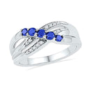 10kt White Gold Women's Round Lab-Created Blue Sapphire Band Ring 1/2 Cttw