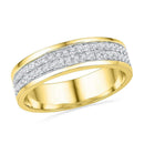 Description 10kt Yellow Gold Women's Round Diamond 2-row Band Ring 1/5 Cttw Gemstone Details 1/5 Carats total weight Specifications 10kt Yellow Gold Combined diamond weight of 1/5 carats total weight represents a range of 0.18 - 0.22 cts. t.w.