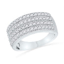Description 10kt White Gold Women's Round Diamond 4-Row Symmetrical Band Ring 1.00 Cttw Gemstone Details 1.00 Carats total weight Specifications 10kt White Gold Combined diamond weight of 1.00 carats total weight represents a range of 0.95 - 1.05 cts. t.w.