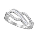 Description 10kt White Gold Women's Round Baguette Diamond Open Crossover Band Ring 1/4 Cttw Gemstone Details 1/4 Carats total weight Specifications 10kt White Gold Combined diamond weight of 1/4 carats total weight represents a range of 0.23 - 0.29 cts. t.w.