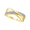 Description 10kt Yellow Gold Women's Round Diamond Crossover Band Ring .02 Cttw Gemstone Details .02 Carats total weight Specifications 10kt Yellow Gold