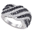 10k White Gold Women's Black Color Enhanced Diamond Striped Cocktail Band Ring 1-1/2 Cttw