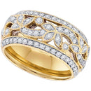 Description 14kt Yellow Gold Women's Round Diamond Floral Band Ring 3/4 Cttw Gemstone Details 3/4 Carats total weight Specifications 14kt Yellow Gold Combined diamond weight of 3/4 carats total weight represents a range of 0.71 - 0.82 cts. t.w.