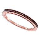 10k Pink Rose Gold Red Color Enhanced Round Diamond Women's Slender Wedding Anniversary Band 1/12 Cttw