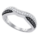 10k White Gold Black Color Enhanced Round Pave-set Diamond Women's Band Ring 1/3 Cttw
