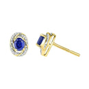 Description 10kt Yellow Gold Women's Oval Lab-Created Blue Sapphire Diamond Stud Earrings 1/8 Cttw Gemstone Details 1/8 Carats total weight Specifications 10kt Yellow Gold Combined gemstone weight of 1/8 carats total weight represents a range of 0.12 - 0.14 cts. t.w.