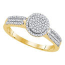 Description 10kt Yellow Gold Women's Diamond Circle Frame Cluster Bridal Engagement Ring 1/5 Cttw Gemstone Details 1/5 Carats total weight Specifications 10kt Yellow Gold Combined diamond weight of 1/5 carats total weight represents a range of 0.18 - 0.22 cts. t.w.