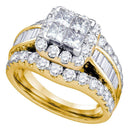 Description 14kt Yellow Gold Women's Princess Diamond Halo Cluster Bridal Wedding Engagement Ring 3.00 Cttw Gemstone Details 3.00 Carats total weight Specifications 14kt Yellow Gold Combined diamond weight of 3.00 carats total weight represents a range of 2.95 - 3.05 cts. t.w.
