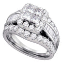 Description 14kt White Gold Women's Princess Diamond Halo Cluster Bridal Wedding Engagement Ring 3.00 Cttw Gemstone Details 3.00 Carats total weight Specifications 14kt White Gold Combined diamond weight of 3.00 carats total weight represents a range of 2.95 - 3.05 cts. t.w.