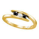 Yellow-tone Sterling Silver Women's Round Black Diamond 3-stone Bridal Wedding Engagement Ring 1/4 Cttw - FREE Shipping (US/CAN)