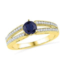 Description 10kt Yellow Gold Women's Round Lab-Created Blue Sapphire Solitaire Split-shank Ring 1/5 Cttw Gemstone Details 1/5 Carats total weight --- 3/4 carat center solitaire Specifications 10kt Yellow Gold Combined gemstone weight of 1/5 carats total weight represents a range of 0.18 - 0.22 cts. t.w.