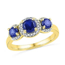 Description 10kt Yellow Gold Women's Round Lab-Created Blue Sapphire 3-stone Diamond Ring 1-3/8 Cttw Gemstone Details 1 & 3/8 Carats total weight --- 1 & 1/3 carat center solitaire Specifications 10kt Yellow Gold Combined gemstone weight of 1 & 3/8 carats total weight represents a range of 1.37 - 1.45 cts. t.w.