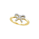 Description 10kt Yellow Gold Women's Round Diamond Ribbon Bow Knot Ring 1/6 Cttw Gemstone Details 1/6 Carats total weight Specifications 10kt Yellow Gold Combined diamond weight of 1/6 carats total weight represents a range of 0.15 - 0.17 cts. t.w.