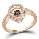 10kt Rose Gold Women's Round Cognac-brown Color Enhanced Diamond Moving Solitaire Ring 3/8 Cttw