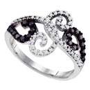 10k White Gold Black Color Enhanced Diamond Women's Whimsical Swirled Cocktail Ring 1/3 Cttw