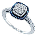 10k White Gold Women's Blue Color Enhanced Diamond Square-shape Cluster Ring 3/8 Cttw