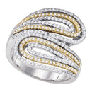 10kt Two-tone White Gold Women's Round Diamond Bypass Fashion Ring 3/4 Cttw