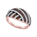 10kt Rose Gold Women's Round Red Color Enhanced Diamond Striped Fashion Ring 1/2 Cttw