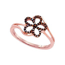 10kt Rose Gold Women's Round Red Color Enhanced Diamond Flower Floral Ring 1/8 Cttw