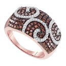 10kt Rose Gold Women's Round Red Color Enhanced Diamond Swirl Fashion Ring 7/8 Cttw
