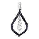 10k White Gold Black Color Enhanced Diamond Women's Teardrop-shape Journey Dangle Pendant 1/2 Cttw