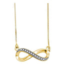 10k Yellow Gold White Round Diamond Infinity Love Pendant Necklace 1/20 Cttw