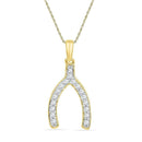 10k Yellow Gold Women's Round Diamond Lucky Wishbone Fortune Pendant 1/6 Cttw