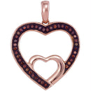 10kt Rose Gold Women's Round Red Color Enhanced Diamond Nested Double Heart Pendant 1/8 Cttw