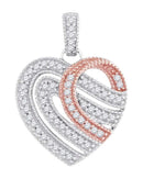 10kt Two-tone Gold Women's Round Diamond Heart Milgrain Stripe Pendant 1/5 Cttw