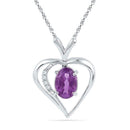 Description 10kt White Gold Women's Oval Lab-Created Amethyst Heart Love Pendant 3/4 Cttw Gemstone Details 3/4 Carats total weight --- 3/4 carat center solitaire Specifications 10kt White Gold Combined gemstone weight of 3/4 carats total weight represents a range of 0.71 - 0.82 cts. t.w.