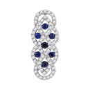 Description 10kt White Gold Women's Round Blue Sapphire Diamond Vertical Woven Fashion Pendant 1/2 Cttw Gemstone Details 1/2 Carats total weight Specifications 10kt White Gold Combined gemstone weight of 1/2 carats total weight represents a range of 0.46 - 0.58 cts. t.w.