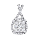 Description 10kt White Gold Women's Round Diamond Framed Square Cluster Pendant 1/2 Cttw Gemstone Details 1/2 Carats total weight Specifications 10kt White Gold Combined diamond weight of 1/2 carats total weight represents a range of 0.46 - 0.58 cts. t.w.