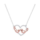 Description 10kt White Gold Women's Round Diamond Heart Rose-tone Lovebirds Pendant Necklace 1/10 Cttw Gemstone Details 1/10 Carats total weight Specifications 10kt White Gold Combined diamond weight of 1/10 carats total weight represents a range of 0.09 - 0.11 cts. t.w.