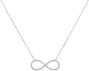 Description 10kt White Gold Women's Round Diamond Infinity Pendant Necklace 1/6 Cttw Gemstone Details 1/6 Carats total weight Specifications 10kt White Gold Combined diamond weight of 1/6 carats total weight represents a range of 0.15 - 0.17 cts. t.w.