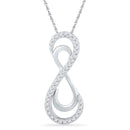 Description 10kt White Gold Women's Round Diamond Vertical Double Infinity Pendant 1/10 Cttw Gemstone Details 1/10 Carats total weight Specifications 10kt White Gold Combined diamond weight of 1/10 carats total weight represents a range of 0.09 - 0.11 cts. t.w.