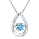 Description 10kt White Gold Women's Round Lab-Created Blue Topaz Solitaire Teardrop Pendant 3/4 Cttw Gemstone Details 3/4 Carats total weight --- 5/8 carat center solitaire Specifications 10kt White Gold Combined gemstone weight of 3/4 carats total weight represents a range of 0.71 - 0.82 cts. t.w.