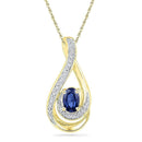 Description 10kt Yellow Gold Women's Oval Lab-Created Blue Sapphire Solitaire Diamond Pendant .02 Cttw Gemstone Details 1/2 Carats total weight --- 1/2 carat center solitaire Specifications 10kt Yellow Gold Combined gemstone weight of 1/2 carats total weight represents a range of 0.46 - 0.58 cts. t.w.