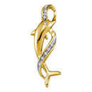 Description 10kt Yellow Gold Women's Round Diamond Cascading Ribbon Dolphin Pendant 1/20 Cttw Gemstone Details 1/20 Carats total weight Specifications 10kt Yellow Gold Combined diamond weight of 1/20 carats total weight represents a range of 0.04 - 0.06 cts. t.w.